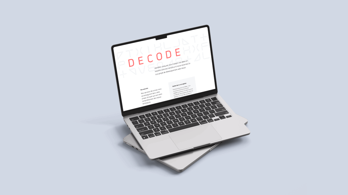 Les ateliers d’analyse ont permis de faire émerger les deux grands concepts qui structurent l’approche et définissent les territoires d’expertise de Dexio: d’abord, la compréhension des enjeux, avec un accompagnement dans l’analyse et la formalisation des besoins; ensuite, la programmation. Deux temps, deux mondes, traduits dans un principe verbal simple et mémorable: “Décode” puis “Code”.