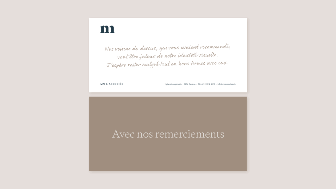 C’est cette particularité que nous avons choisie de mettre en valeur en créant un monogramme simple et équilibré, qui réunit les deux lettres comme un trait d’union entre leurs fondations respectives. Le genre de petit « truc » graphique qu’on adore trouver et mettre en évidence. Du coup, ce nouvel asset graphique devient une pièce maîtresse de l’identité de marque.